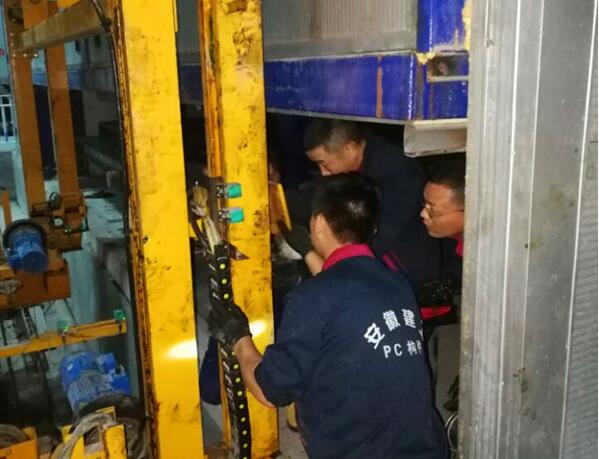 國內最大的建筑產(chǎn)業(yè)化住宅項目濱湖“沁園”正在進(jìn)行緊張的吊裝生產(chǎn)中,為確保該項目PC件的及時(shí)供貨,建筑工業(yè)公司采取了歇人不歇機的輪班作業(yè)方式,日夜加班趕制構件產(chǎn)品,確保施工現場(chǎng)進(jìn)度。然而,11月10日晚19:00左右,4#內墻板生產(chǎn)線(xiàn)的關(guān)鍵設備碼垛機因超負荷突然發(fā)生故障,順暢的流水線(xiàn)出現了停滯。面對突如其來(lái)的故障,工業(yè)公司立即行動(dòng),組織力量,僅用了3小時(shí),順利排除故障,確保了沁園項目的按時(shí)供貨,充分體現了安徽三建“雷厲風(fēng)行 真抓實(shí)干”的企業(yè)作風(fēng)。