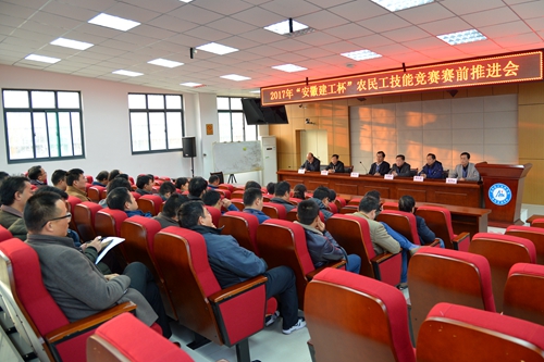 2017年“安徽建工杯”全省農民工技能大賽決賽將于11月24、25日在我院舉行,學(xué)院領(lǐng)導高度重視,技能大賽的各項準備工作正在緊鑼密鼓地展開(kāi)。為確保此次農民工技能大賽取得圓滿(mǎn)成功,學(xué)院于11月20日下午在錄播室召開(kāi)了 “安徽建工杯”農民工技能大賽賽前推進(jìn)會(huì )。學(xué)院領(lǐng)導班子及所有相關(guān)工作人員參加了會(huì )議。會(huì )議由副院長(cháng)周元清主持。