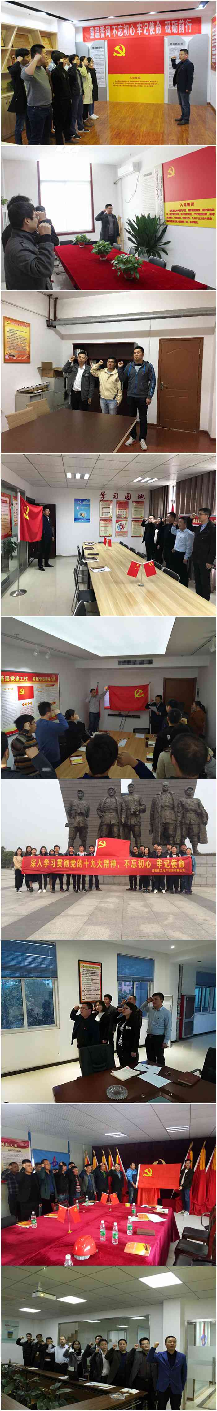 為深入學(xué)習宣貫黨的十九大會(huì )議精神,安建地產(chǎn)所屬各黨支部近日紛紛組織開(kāi)展“不忘初心 牢記使命 重溫入黨誓詞”主題黨日活動(dòng),學(xué)習十九大會(huì )議精神,重溫入黨誓詞,進(jìn)一步堅定不忘初心、牢記使命的決心和信念。