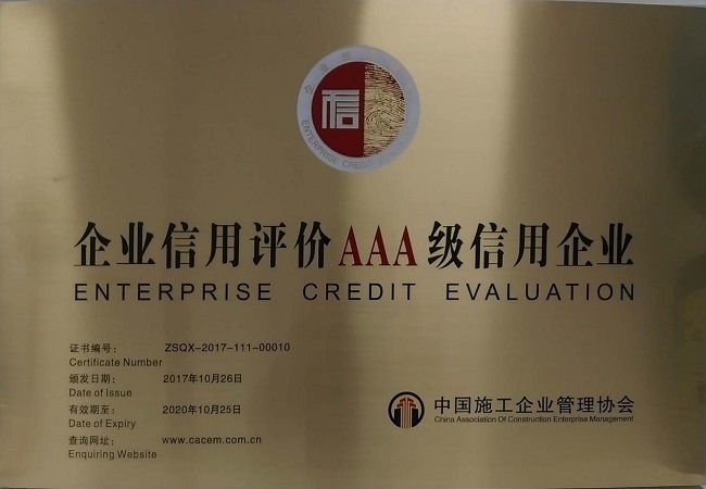 此次公司獲評中施企協(xié)企業(yè)信用評價(jià)AAA級信用企業(yè),是外界對我公司管理能力、效益水平、發(fā)展前景等綜合實(shí)力的認可,為提高公司知名度和競爭力增添了新的砝碼。