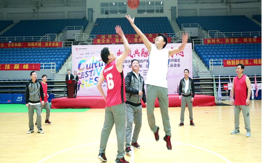本屆文化節由安徽水利和順地產(chǎn)有限公司黨委、工會(huì )、團委聯(lián)合主辦。開(kāi)幕式在嘹亮的《和順的家園》歌聲中拉開(kāi)帷幕,和順地產(chǎn)所屬各單位組建的14支運動(dòng)隊伍喊著(zhù)高昂的參賽口號,揮動(dòng)著(zhù)隊旗,伴著(zhù)雄壯的運動(dòng)員進(jìn)行曲,在職工的歡呼聲中,精神抖擻的向大家走來(lái)。本次運動(dòng)會(huì )共14家單位參加,其中聯(lián)建支部的城建公司、園林公司、蚌埠公司、普達建設等聯(lián)建單位職工積極參與其中,百余名運動(dòng)員參加籃球、羽毛球、乒乓球等三項運動(dòng)賽事。
