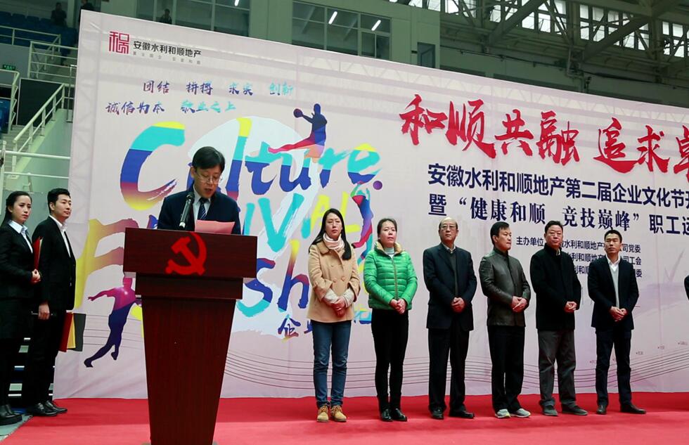 安徽水利工會(huì )主席朱樂(lè )華為企業(yè)文化節致辭。他指出,和順地產(chǎn)自2015年11月成立以來(lái),在整合現有房地產(chǎn)資源的基礎上,銳意進(jìn)取,改革創(chuàng )新,注重文化建設和人才培養,展示了和順地產(chǎn)積極向上的勃勃生機。同時(shí),朱總在文化傳承、結合生產(chǎn)和文化品牌建設等三方面提出了要求。最后,他向各位來(lái)賓和運動(dòng)員表達了問(wèn)候,預祝運動(dòng)會(huì )取得圓滿(mǎn)成功。