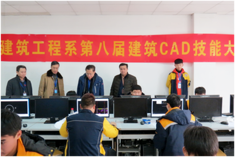 為進(jìn)一步普及建筑CAD繪圖技術(shù),提升學(xué)生建筑CAD技能應用水平,促進(jìn)學(xué)院建筑CAD教學(xué)再上新臺階,同時(shí)也為市、省級和國家級中等職業(yè)學(xué)院建筑CAD技能大賽選拔人才做準備。2017年12月8號下午,由建筑工程系舉辦的第八屆CAD技能大賽在計算機中心舉行。任建設副院長(cháng)、呂良玉副院長(cháng)、張齊欣院助、建筑工程系陸飛虎主任、楊繼強書(shū)記和實(shí)訓中心陳陸龍副主任到比賽現場(chǎng)觀(guān)看了比賽。歐小佩、段淑婭和朱香茹等三位老師擔當此次比賽的裁判。