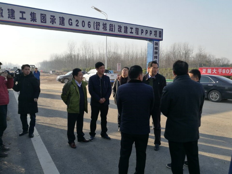 12月19日,安徽省公路局黨委委員、副局長(cháng)孫東根一行蒞臨G206(舒城段)改建工程PPP項目檢查指導工作。六安市交通局副局長(cháng)楊廣來(lái),舒城縣交通局局長(cháng)許教育,舒城安建投資有限公司公司董事長(cháng)、總經(jīng)理楊軍,施工、監理單位相關(guān)負責人陪同檢查。