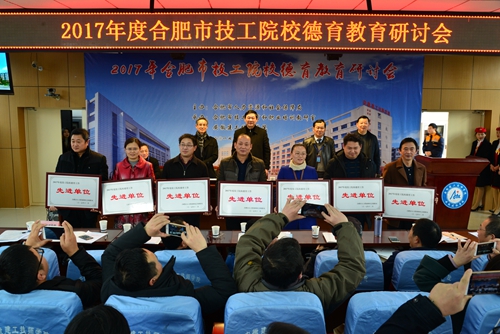 會(huì )上,安徽輕工業(yè)技師學(xué)院、合肥工貿高級技工學(xué)校、安徽汽車(chē)應用技師學(xué)院、安徽合肥機電技師學(xué)院、安徽新東方烹飪技工學(xué)校在會(huì )上也進(jìn)行了交流發(fā)言,會(huì )議還對2017年度全市技工院校德育工作先進(jìn)集體和先進(jìn)個(gè)人進(jìn)行了表彰,與會(huì )代表參觀(guān)了我院德育教育成果。