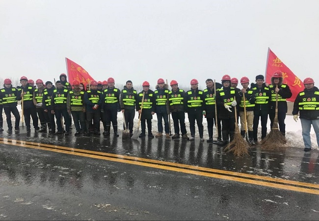 雨雪無(wú)情人有情,安徽路橋集團在本次暴雪期間累計調動(dòng)機械設備100余臺(輛),出動(dòng)人員500余人,義務(wù)參與項目所在地的鏟雪除冰工作,保證了車(chē)輛的通行及行人的安全。各項目員工清掃積雪的場(chǎng)景為江淮大地增添一抹亮色,天寒地凍卻如一股溫流溫暖著(zhù)行人,也彰顯出安徽路橋集團負責任的國企形象。