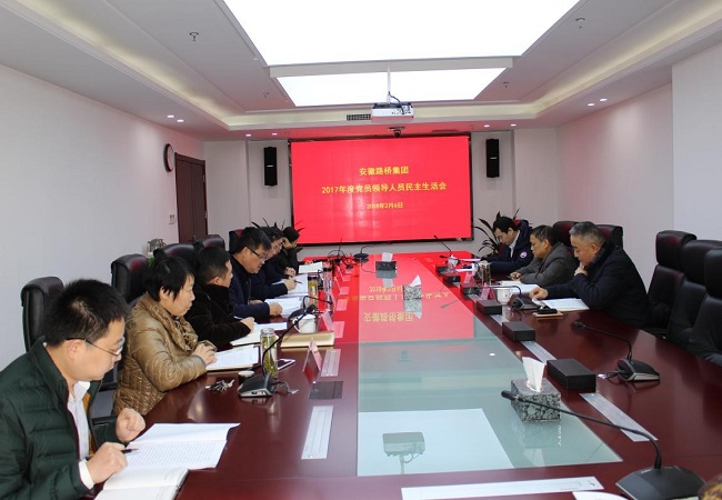 根據集團黨委的統一安排部署,2月6日上午,安徽路橋集團召開(kāi)2017年度黨員領(lǐng)導人員民主生活會(huì ),公司黨委書(shū)記、董事長(cháng)、總經(jīng)理盛明宏主持會(huì )議,公司領(lǐng)導班子成員參加會(huì )議。集團紀委書(shū)記宋志華,紀委副書(shū)記、監察室主任龔志酬及黨委工作部主管陳楠一行到會(huì )指導。