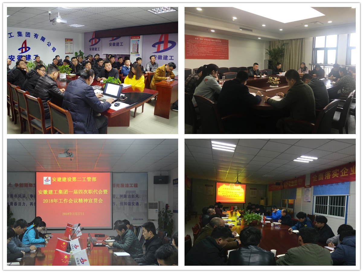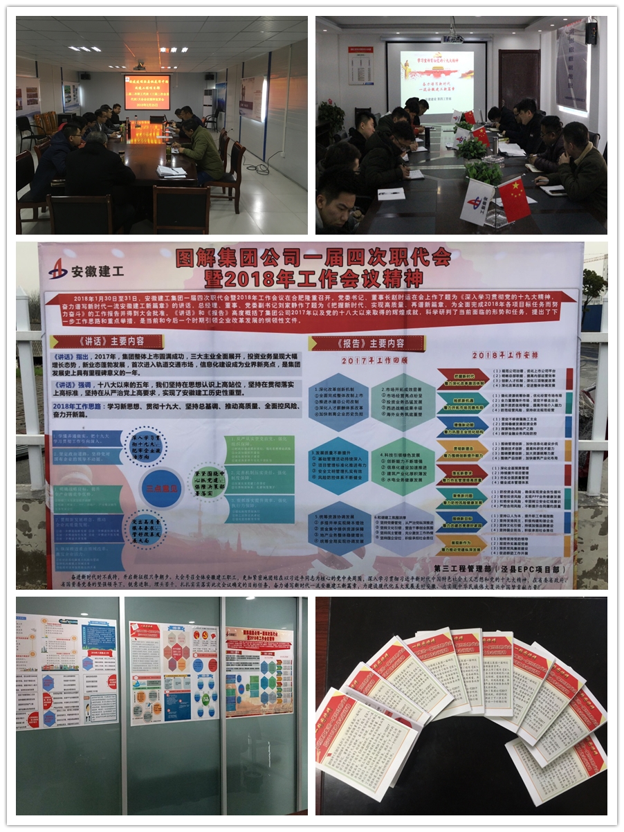 公司所屬各部門(mén)、工管部、辦事處和重點(diǎn)項目部把學(xué)習貫徹集團公司黨委書(shū)記、董事長(cháng)趙時(shí)運所作的《深入學(xué)習貫徹黨的十九大精神 奮力譜寫(xiě)新時(shí)代一流安徽建工新篇章》重要講話(huà)和集團公司總經(jīng)理劉家靜所作的《把握新時(shí)代 實(shí)現高質(zhì)量 再譜新篇章 為全面完成2018年各項目標任務(wù)而努力奮斗》的工作報告,公司總經(jīng)理陳傳文所作的《邁入新時(shí)代 展現新作為 實(shí)現新突破 奮力譜寫(xiě)安建建設轉型發(fā)展新篇章》工作報告和黨委書(shū)記王可武所作的《高舉旗幟 砥礪前行 奮力開(kāi)創(chuàng )安建建設轉型發(fā)展新局面》講話(huà)作為當前首要學(xué)習任務(wù),第一時(shí)間組織召開(kāi)專(zhuān)題學(xué)習會(huì ),集中學(xué)習傳達兩級職代會(huì )會(huì )議精神。通過(guò)早班會(huì )、班后會(huì )、專(zhuān)題會(huì )、座談會(huì )、文化宣傳欄、QQ工作交流群、手機微信等宣傳形式,將兩級職代會(huì )精神傳遞到基層每個(gè)角落,把廣大干部職工的思想和行動(dòng)統一到會(huì )議精神上來(lái)。