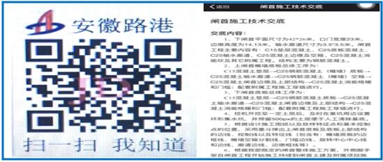 南坪船閘項目部二維碼標識在現場(chǎng)顯要位置集中展示,取得了良好的效果。