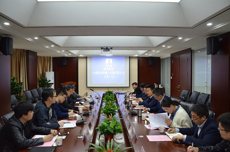 2018年4月4日上午,中建商品混凝土安徽有限公司總經(jīng)理方介生一行來(lái)我公司洽談業(yè)務(wù),公司董事長(cháng)、黨委書(shū)記、總經(jīng)理張鍵熱情接待了方介生一行,并舉行了業(yè)務(wù)座談會(huì )。公司董事、副總經(jīng)理、黨委委員徐友修主持會(huì )議,營(yíng)銷(xiāo)分公司、第三分公司、財務(wù)部等相關(guān)單位、部門(mén)負責人參加座談會(huì )。