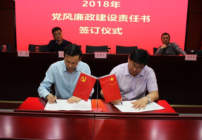 會(huì )上,公司黨委書(shū)記盛明宏與所屬各黨總支(支部)書(shū)記簽署了《黨風(fēng)廉政建設責任書(shū)》。全體與會(huì )人員集體觀(guān)看了黨風(fēng)廉政教育片《巡視利劍》。