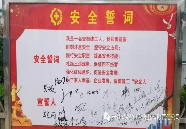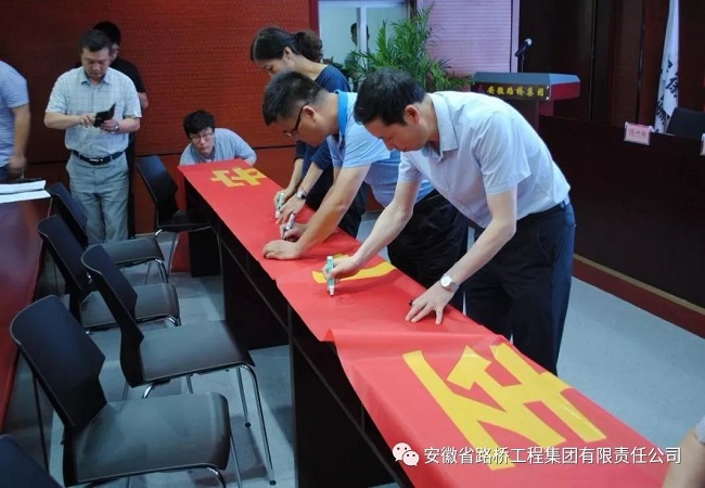 全體參會(huì )人員在印有本次安全生產(chǎn)月主題“生命至上、安全發(fā)展”的條幅上進(jìn)行簽字