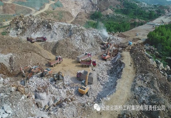 天石鈣業(yè)地處新杭服務(wù)區上行段,樁號K8+600-K8+800。這短短的200米范圍內遍布著(zhù)硬質(zhì)石山、低壓桿線(xiàn)、采石礦場(chǎng)、居民住房等,推進(jìn)難度十分巨大,為了加快進(jìn)度,項目部決定采用雙向推進(jìn)的方法,由大小樁號同時(shí)向中間開(kāi)挖,投入大量機械,提高施工效率。由于該段內多硬質(zhì)石山,必須采用爆破開(kāi)采,受限于政府的炸藥管制政策,工作開(kāi)展較慢。為此,項目部積極與政府有關(guān)部門(mén)溝通協(xié)調,最終獲得了炸藥使用權,并采用超深孔爆破的方法大大提升了開(kāi)采速度。針對斷點(diǎn)內的桿線(xiàn)、房屋問(wèn)題,項目部積極協(xié)調,配合政府部門(mén)拆除紅線(xiàn)內房屋,并在獲得相關(guān)部門(mén)批準后,自行組織人員機械對桿線(xiàn)進(jìn)行遷移,掃清了工作推進(jìn)中的拆遷問(wèn)題。
