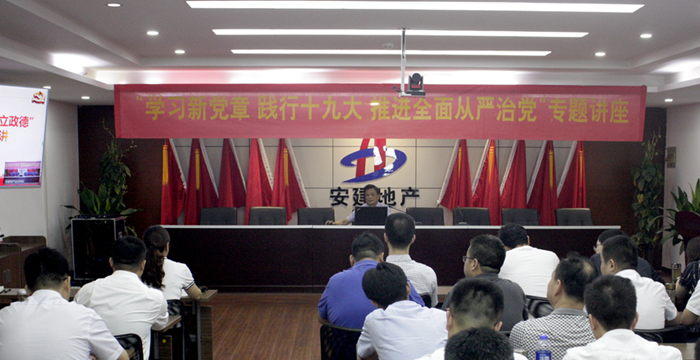 為深入學(xué)習貫徹黨的十九大精神,結合正在開(kāi)展的“講忠誠、嚴紀律、立政德”專(zhuān)題警示教育,7月2日,安建地產(chǎn)在安建國際大廈21樓會(huì )議室舉辦了“學(xué)習新黨章 踐行十九大 推進(jìn)全面從嚴治黨”專(zhuān)題培訓班,公司領(lǐng)導班子成員、所屬各單位班子成員、黨群部負責人,各支部委員,機關(guān)黨支部全體黨員,“七一”受表彰人員參加培訓。培訓班邀請中共安徽省委黨校黨史黨建部副主任、教授吳梅芳,安徽建工集團黨委委員、紀委書(shū)記宋志華授課。