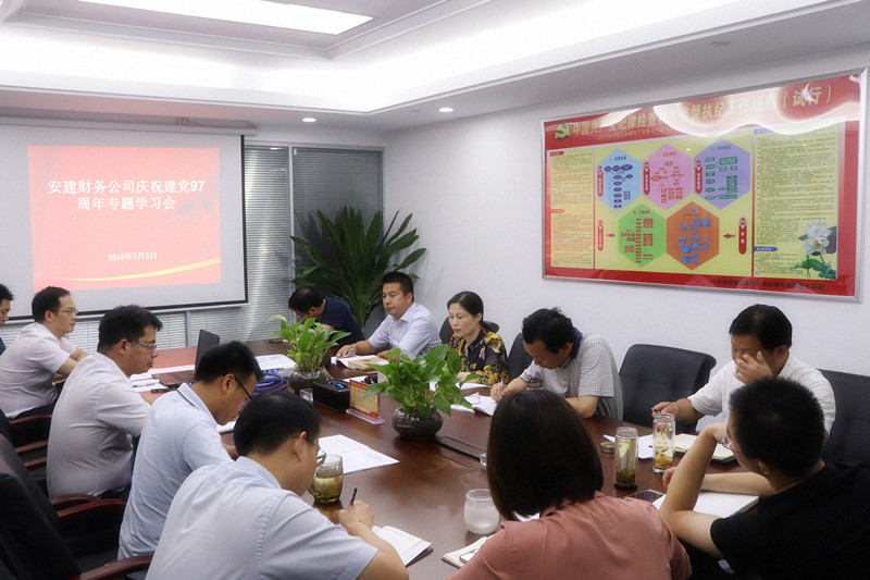 7月5日,安建財務(wù)黨總支組織召開(kāi)慶祝建黨97周年專(zhuān)題學(xué)習會(huì ),迅速傳達了集團慶祝建黨97周年暨黨的建設工作會(huì )議精神。會(huì )議由公司黨總支書(shū)記潘琳主持,公司領(lǐng)導班子、中層以上管理人員及各黨支部書(shū)記、支委參加了會(huì )議。