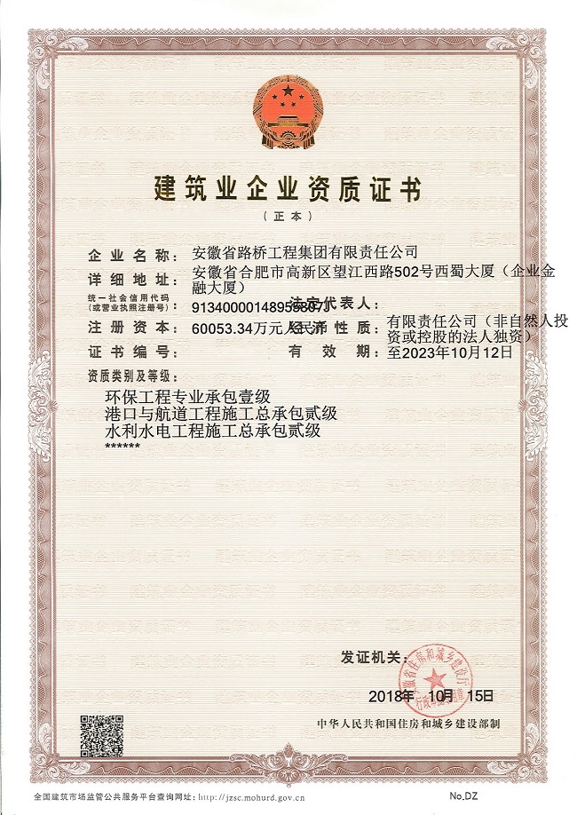 10月15日,經(jīng)安徽省住房和城鄉建設廳核準,公司成功取得環(huán)保工程專(zhuān)業(yè)承包一級、港口與航道工程施工總承包二級、水利水電工程總承包二級資質(zhì)證書(shū)。近兩年來(lái),安徽路橋集團人努力拼搏、不斷進(jìn)取,取得了企業(yè)內部管理和外部經(jīng)營(yíng)一個(gè)又一個(gè)的突破。 此次資質(zhì)增項是公司經(jīng)營(yíng)戰略的又一次成功布局,為公司進(jìn)一步拓展市場(chǎng)、延伸產(chǎn)業(yè)鏈提供了硬件支持。