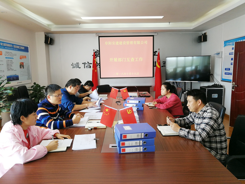 10月18日,阜陽(yáng)安建建設管理有限公司以“明確崗位職責,規范內部管理,提升運營(yíng)水平”為主題,開(kāi)展部門(mén)之間的自查互查工作。各部門(mén)本著(zhù)嚴肅認真的態(tài)度,進(jìn)行崗位自查和部門(mén)互查,內部查擺與開(kāi)門(mén)納諫相結合,及時(shí)發(fā)現工作中的問(wèn)題和不足,認真查找原因、改進(jìn)工作。