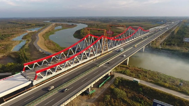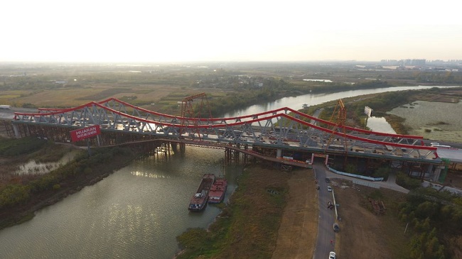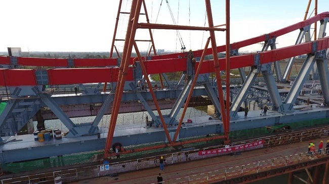 2018年11月2日下15點(diǎn)48分,中派河特大橋最后一個(gè)桁架桿件吊裝成功,標志著(zhù)合安改擴建項目中派河特大橋順利合攏。