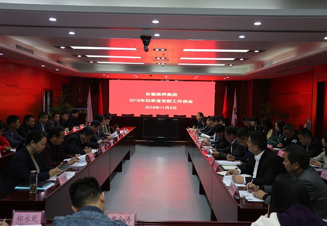 11月5日下午,安徽路橋集團在安建大廈8樓會(huì )議室召開(kāi)2018年四季度黨群工作例會(huì )。公司黨委書(shū)記、董事長(cháng)盛明宏,公司黨委委員、工會(huì )主席王永來(lái)出席會(huì )議,公司黨委委員、紀委書(shū)記王勝利主持會(huì )議。所屬各基層黨總支、支部、工會(huì )、團組織主要負責同志及公司機關(guān)黨群部門(mén)負責人參加會(huì )議。