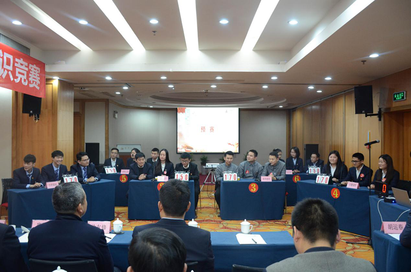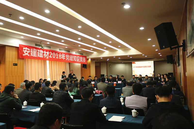 11月28日下午,安建建材黨建知識競賽在良苑大廈5樓舉行。公司領(lǐng)導張鍵、胡運春、徐友修、廖紹鋒、黃正清蒞臨指導,來(lái)自公司所屬8個(gè)單位共計18名選手組成6個(gè)代表隊參加比賽。機關(guān)部門(mén)負責人及黨群部門(mén)全體人員,所屬各單位黨支部、工會(huì )、紀檢、團支部負責人共計50余人觀(guān)摩比賽。