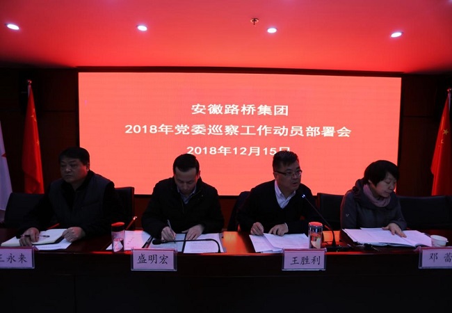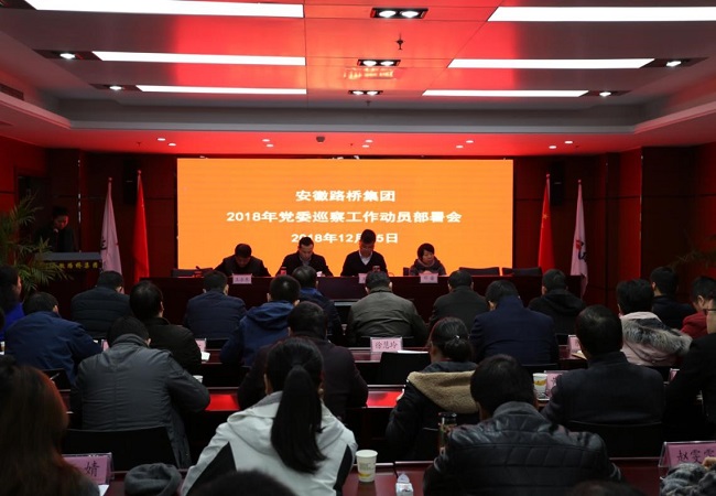 為貫徹落實(shí)全面從嚴治黨主體責任和監督責任,規范路橋集團巡察工作,促進(jìn)公司健康發(fā)展,12月15日,安徽路橋集團召開(kāi)2018-2019年黨委巡察工作動(dòng)員部署會(huì )。黨委書(shū)記、董事長(cháng)盛明宏出席會(huì )議并作動(dòng)員部署講話(huà),黨委委員、紀委書(shū)記王勝利主持會(huì )議,公司巡察領(lǐng)導小組成員、紀委委員,所屬各子分公司黨政負責人、紀檢委員、黨群部門(mén)負責人及公司巡察辦及巡察組人員共計60人參加會(huì )議。