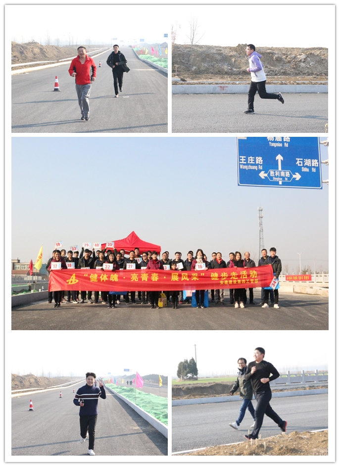 一元復始,萬(wàn)象更新,2019年1月1日,安建建設第四工管部全體員工在工管部建設的固鎮縣劉集路上開(kāi)展“健體魄•亮青春•展風(fēng)采”的健步走活動(dòng)。公司總經(jīng)理陳修翔,紀委書(shū)記、工會(huì )主席高立久,固鎮縣重點(diǎn)局相關(guān)領(lǐng)導應邀參加此次活動(dòng),共同迎接新年的到來(lái)。