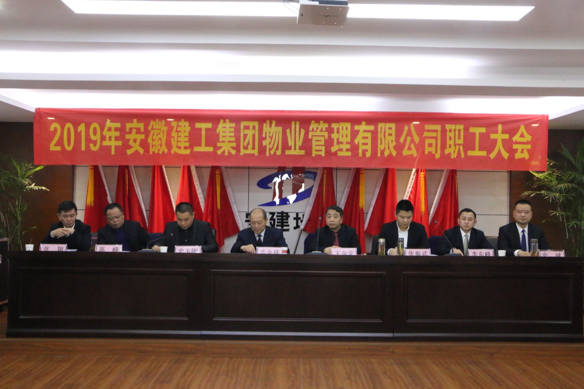 1月20日,安徽建工集團物業(yè)管理有限公司2019年職工大會(huì )在安建大廈召開(kāi)。安徽建工服務(wù)中心黨總支委員、副總經(jīng)理吉金祥,安徽建工服務(wù)中心副總經(jīng)理、安建物業(yè)黨支部書(shū)記、董事長(cháng)王金宏,上海鈺鼎物業(yè)公司總經(jīng)理張振武等出席會(huì )議,會(huì )議由上海鈺鼎物業(yè)合肥分公司總經(jīng)理史玉剛主持,物業(yè)公司80余名職工參加大會(huì )。