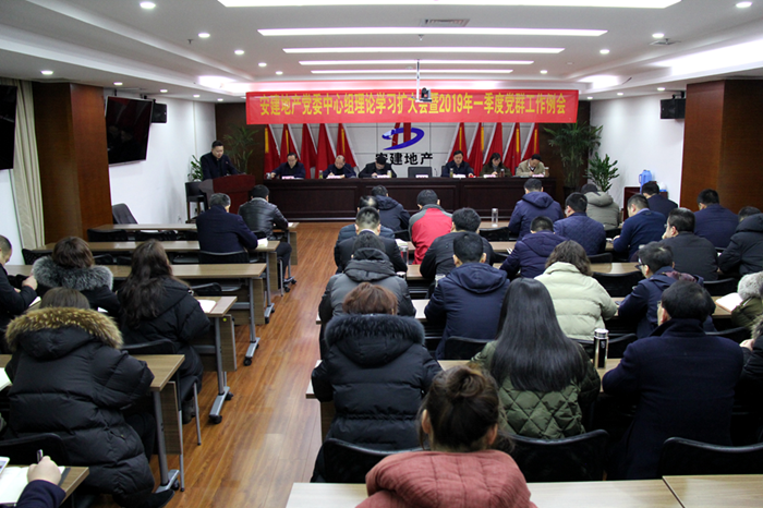 1月31日,安建地產(chǎn)在安建國際大廈21樓第三會(huì )議室召開(kāi)黨委中心組理論學(xué)習擴大會(huì )暨2019年一季度黨群例會(huì )。公司領(lǐng)導班子成員、所屬各支部書(shū)記、黨群部、工會(huì )、團支部負責人參加了此次會(huì )議。會(huì )議由安建地產(chǎn)黨委委員、紀委書(shū)記王緒徽主持。
