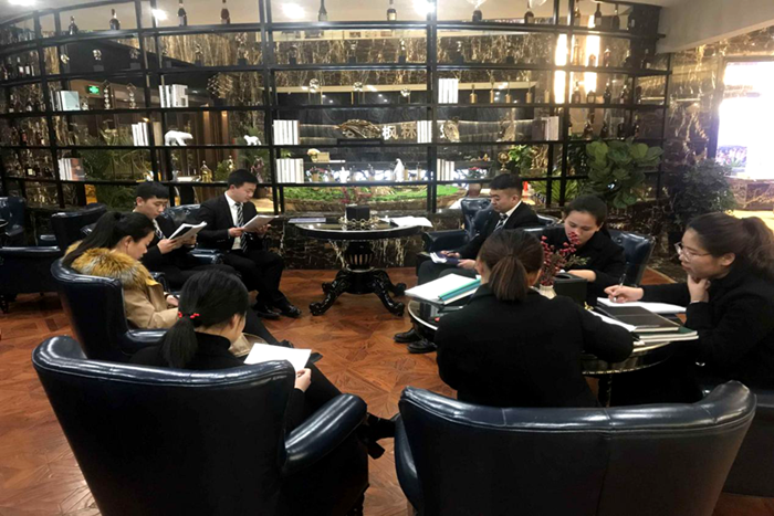 在安建地產(chǎn)·楓林源筑項目營(yíng)銷(xiāo)中心,置業(yè)顧問(wèn)繼續沿用日例會(huì )制度,通過(guò)每日對銷(xiāo)售工作的梳理、探討與分享,及時(shí)掌握市場(chǎng)動(dòng)態(tài)和客戶(hù)需求,制定合理策略,為項目后期持續開(kāi)盤(pán)與有效去化提供保障。