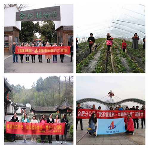 其他各單位也開(kāi)展了豐富多彩的主題活動(dòng),蚌埠建材的女職工們包起了餃子,溫馨而又歡樂(lè )。一分公司的女職工們收到了鮮花和手寫(xiě)賀卡,溫暖而又貼心。營(yíng)銷(xiāo)分公司、安徽瑞特、合肥建材、合肥分公司的女職工們相繼走進(jìn)大自然,放松心情,陶冶情操,或來(lái)到植物園看芳華綻放,或來(lái)到田野采摘初春的清新,或來(lái)到績(jì)溪體會(huì )徽文化的底蘊,或來(lái)到萬(wàn)佛湖賞盡美好春色。