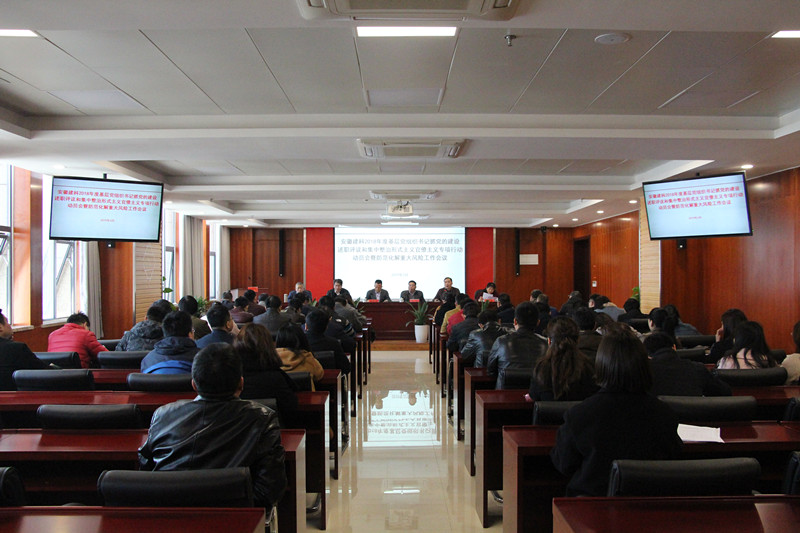 3月14日上午,安徽建科黨委組織召開(kāi)2018年度基層黨組織書(shū)記抓黨的建設述職評議和集中整治形式主義官僚主義專(zhuān)項行動(dòng)推進(jìn)會(huì )暨防范化解重大風(fēng)險工作會(huì )議。院領(lǐng)導班子,各黨支部相關(guān)人員,來(lái)自管理、設計、檢測和實(shí)體部門(mén)的中層近60人參加會(huì )議。會(huì )議由副院長(cháng)李躍進(jìn)主持。