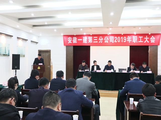 3月15日,安徽一建三分公司召開(kāi)2019年職工大會(huì )。公司黨委書(shū)記、董事長(cháng)程鵬出席會(huì )議并講話(huà)。三分公司經(jīng)理兼支部書(shū)記羅朝行、黨支部副書(shū)記沙冬梅、副經(jīng)理張世斌、張勝虎及三分公司的全體職工參加了會(huì )議。會(huì )議由沙冬梅主持。