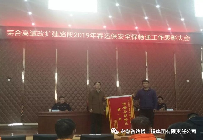 3月14日下午,合巢蕪管理處與高速交警六大隊聯(lián)合召開(kāi)蕪合高速改擴建路段2019年春運保安全保暢通工作表彰大會(huì )。會(huì )上,合巢蕪管理處通報了各標段在春運期間高速安全保通工作評比的綜合評分。在考核期間,蕪合改擴建三標項目部遇到突發(fā)情況反應迅速,采取應急措施及時(shí),極大的緩解了合巢蕪高速的交通壓力。經(jīng)綜合評比,獲得了第一名的優(yōu)異成績(jì)。管理處副處長(cháng)王寧勇為蕪合改擴建三標項目部頒發(fā)“保安全,保暢通”第一名的錦旗。