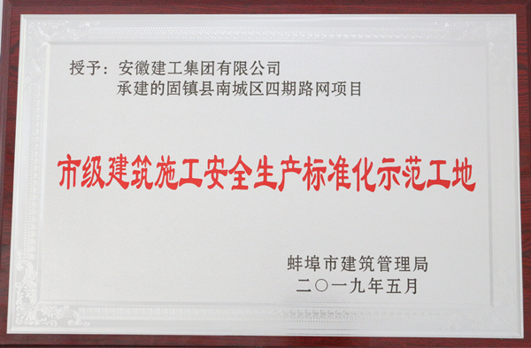 4月24日安徽建工集團固鎮縣南城區四期路網(wǎng)項目,順利通過(guò)蚌埠市“市級建筑施工安全生產(chǎn)標化示范工地”驗收。