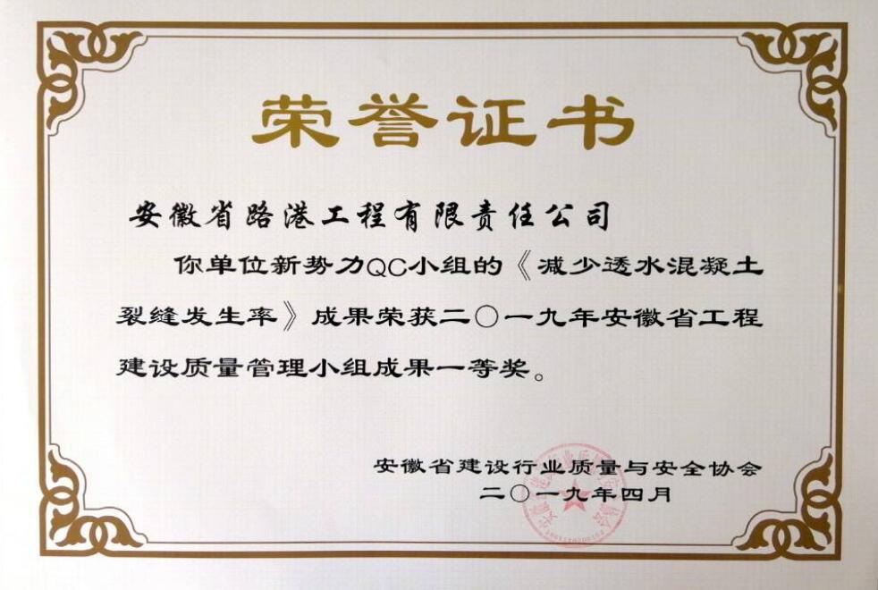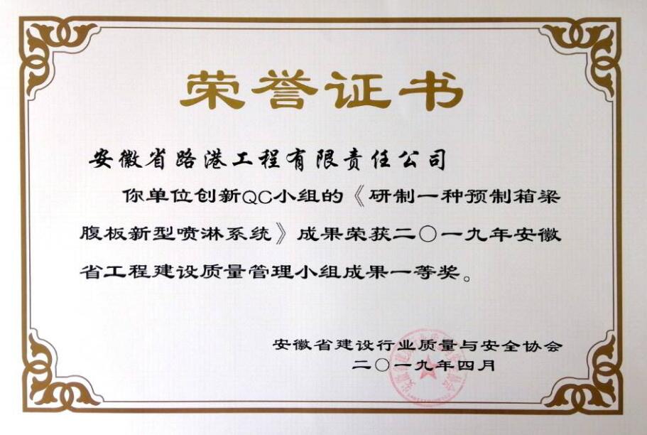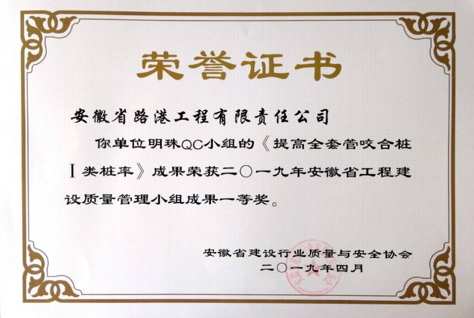日前,從安徽省建設行業(yè)質(zhì)量與安全協(xié)會(huì )傳來(lái)喜訊,安徽省路港工程有限責任公司明珠QC小組的《提高全套管咬合樁Ⅰ類(lèi)樁率》、新勢力QC小組的《減少透水混凝土裂縫發(fā)生率》、創(chuàng )新QC小組的《研制一種預制箱梁腹板新型噴淋系統》3項成果榮獲二〇一九年安徽省工程建設質(zhì)量管理小組成果一等獎。