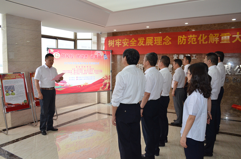 6月1日上午,公司在建工大廈7樓大廳舉行2019年“安全生產(chǎn)月”安全宣誓儀式暨安全承諾簽名活動(dòng)。儀式由公司安全生產(chǎn)部聯(lián)合工會(huì )組織,公司副總經(jīng)理徐友修主持,公司領(lǐng)導班子及機關(guān)各部門(mén)負責人到場(chǎng)參加儀式。