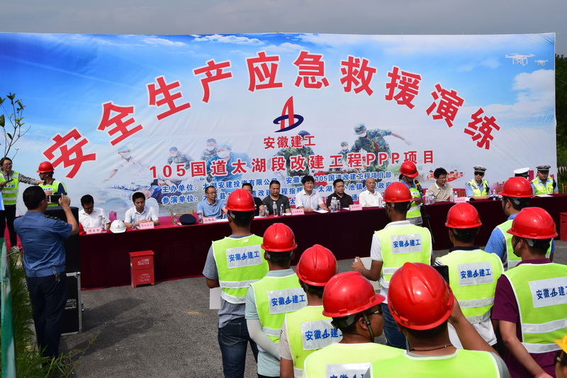 6月24日,安建投資太湖PPP項目在國道新建段組織開(kāi)展安全生產(chǎn)應急救援演練。太湖縣G105指揮部、縣應急管理局、小池鎮政府、路港G105施工項目部以及縣公安、消防、交通、醫療、衛生等多單位聯(lián)合參演。
