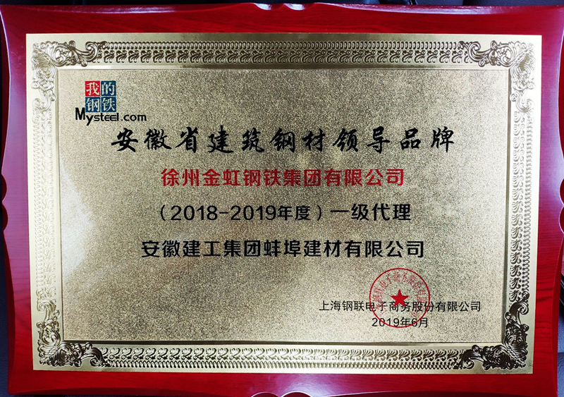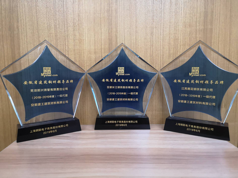 會(huì )議中,安徽建工建筑材料有限公司喜獲安徽長(cháng)江鋼鐵股份有限公司、江蘇沙鋼集團有限公司、蕪湖新興鑄管有限公司、江蘇雨花鋼鐵有限公司以及徐州金虹鋼鐵集團有限公司五家安徽省建筑鋼材領(lǐng)導品牌一級代理商稱(chēng)號,成為本次會(huì )議唯一一家獲得五家鋼廠(chǎng)代理經(jīng)銷(xiāo)商殊榮的公司。