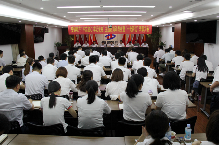 為紀念建黨98周年,深入推進(jìn)“不忘初心,牢記使命”主題教育,表彰先進(jìn)集體和優(yōu)秀個(gè)人,6月28日,安建地產(chǎn)在安建國際大廈21樓會(huì )議室召開(kāi)“不忘初心,牢記使命”主題教育動(dòng)員會(huì )、黨課報告會(huì )和“一先兩優(yōu)”表彰大會(huì )暨黨委中心組理論學(xué)習擴大會(huì )議。公司領(lǐng)導班子成員,所屬各單位班子成員、黨群部負責人,機關(guān)黨支部全體黨員,受表彰人員參加會(huì )議。集團“不忘初心、牢記使命”主題教育第四督導組副組長(cháng)王永來(lái)等到會(huì )指導。