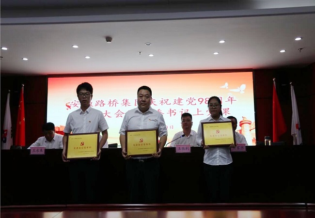 為進(jìn)一步表彰先進(jìn)、樹(shù)立典型、激發(fā)干勁,6月30日上午,安徽路橋集團召開(kāi)慶祝建黨98周年表彰大會(huì ),集中表彰了一批先進(jìn)基層黨組織、優(yōu)秀共產(chǎn)黨員和優(yōu)秀黨務(wù)工作者。公司領(lǐng)導班子成員、中層管理人員、公司機關(guān)黨支部全體黨員參加會(huì )議,會(huì )議由黨委委員、紀委書(shū)記王勝利同志主持。