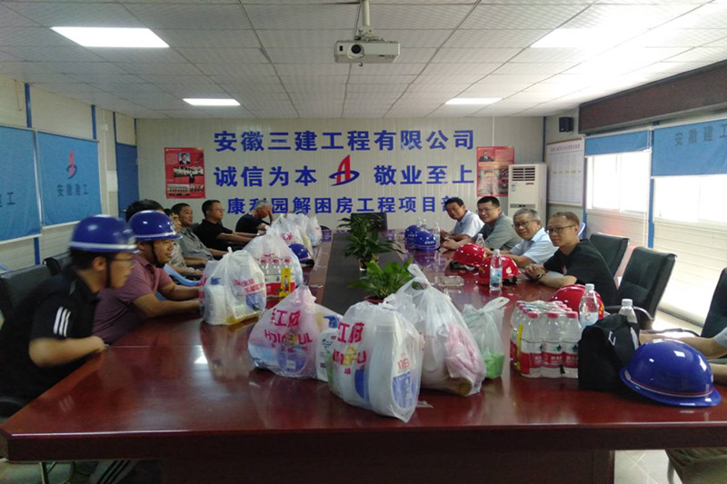 七月中旬以來(lái),正值建筑施工生產(chǎn)旺季,氣溫節節攀升,8月2日,安徽建科紀委書(shū)記、工會(huì )主席程鋼、工會(huì )副主席張強、生產(chǎn)安全部副主任陳鵬飛及相關(guān)單位負責人分別到監理公司所屬康利園解困房項目、特技公司所屬惠民新村19號樓項目、結構四所所屬合肥恒信巨星(奔馳)4s店、奧迪4s店項目、軌道交通室的kp1地塊48班小學(xué)、10班幼兒園項目,代表院黨委、工會(huì )為冒酷暑、頂烈日戰斗在作業(yè)的員工送去清涼油、風(fēng)油精、洗衣液、毛巾、礦泉水等防暑降溫藥品和生活用品。