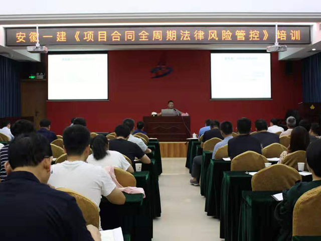 為進(jìn)一步加強項目合同的管理水平,2019年9月11日,《項目合同全周期法律風(fēng)險管控》講座活動(dòng)在安徽一建六樓會(huì )議室舉行。本次活動(dòng)由安徽建工集團控股有限公司總法律顧問(wèn)申玉恩主講,安徽一建黨委書(shū)記、董事長(cháng)程鵬及安徽一建機關(guān)全體人員、各在肥子分公司人員等參加。