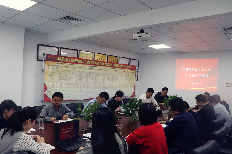 10月11日,安建財務(wù)公司黨總支中心組召開(kāi)第15次(擴大)學(xué)習會(huì )議。公司黨總支書(shū)記、副總經(jīng)理潘琳主持會(huì )議。公司領(lǐng)導班子成員,所屬各黨支部書(shū)記,支部委員及黨群部門(mén)相關(guān)人員參加了會(huì )議。