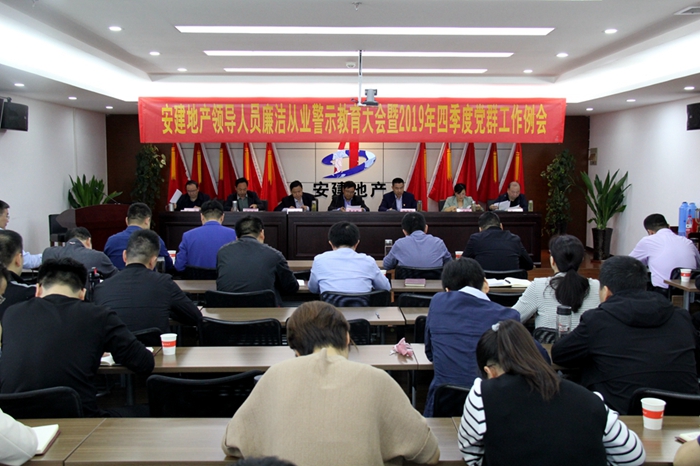 10月23日下午,安建地產(chǎn)黨委在公司第三會(huì )議室召開(kāi)了領(lǐng)導人員廉潔從業(yè)警示教育大會(huì )暨2019年四季度黨群工作例會(huì ),公司領(lǐng)導班子成員、所屬各支部書(shū)記、黨群部、工會(huì )、團支部負責人,公司機關(guān)和安建設計院各部門(mén)負責人共計50人參加會(huì )議。公司黨委副書(shū)記、總經(jīng)理楊海飛主持會(huì )議。