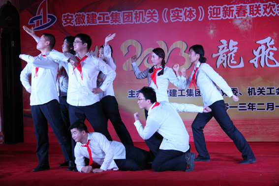 集團公司機關(guān)及直屬經(jīng)濟實(shí)體2013年迎新春聯(lián)歡會(huì )于2月1日下午舉行。由集團公司機關(guān)黨委、工會(huì )主辦,海外公司協(xié)辦的新春聯(lián)歡會(huì ),本著(zhù)“歡樂(lè )、祥和、節儉”的原則,突出“揚帆2013,龍飛蛇舞賀新春”這一主題,精心編排了《建工海外人》等14個(gè)節目,充分展現了安徽建工人特別能吃苦、特別能戰斗的精神風(fēng)貌,聚集正能量、激發(fā)新動(dòng)力的員工風(fēng)采。集團公司領(lǐng)導與機關(guān)及直屬經(jīng)濟實(shí)體350多名員工互動(dòng)交流喜迎新年。