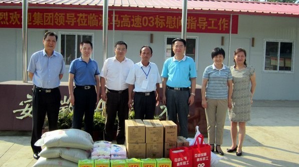 時(shí)值五黃六月,炎陽(yáng)炙人,7月24日下午,安徽建工集團總經(jīng)理劉家靜一行在省路橋公司董事長(cháng)、總經(jīng)理汪衛東、黨委書(shū)記陳光磊的陪同下,冒著(zhù)酷暑來(lái)到該公司承建的滁馬03標,對奮戰在一線(xiàn)的廣大員工進(jìn)行親切慰問(wèn),送上慰問(wèn)金和慰問(wèn)品;并對項目各項工作進(jìn)行了檢查指導。