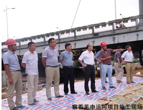 2015625下午,集團公司黨委書(shū)記、董事長(cháng)趙時(shí)運蒞臨安徽水利股份蕪湖市澛港閘(橋)項目、蕪申運河項目工地檢查指導工作,集團公司副總經(jīng)理、總工程師戴良軍,總經(jīng)理助理、工程管理部主任童宗勝,安徽水建總公司黨委委員、水利股份公司副總經(jīng)理張曉林等陪同檢查。