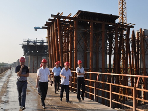 王總首先聽(tīng)取了西北公司經(jīng)理關(guān)于2015年上半年生產(chǎn)經(jīng)營(yíng)管理情況的工作匯報,隨后查看了在建中的渭河正陽(yáng)大橋項目和秦漢大道項目,對西北公司在工程施工質(zhì)量、安全、進(jìn)度等方面取得的成績(jì)給予了充分肯定,并勉勵西北公司繼續開(kāi)拓西北市場(chǎng)。