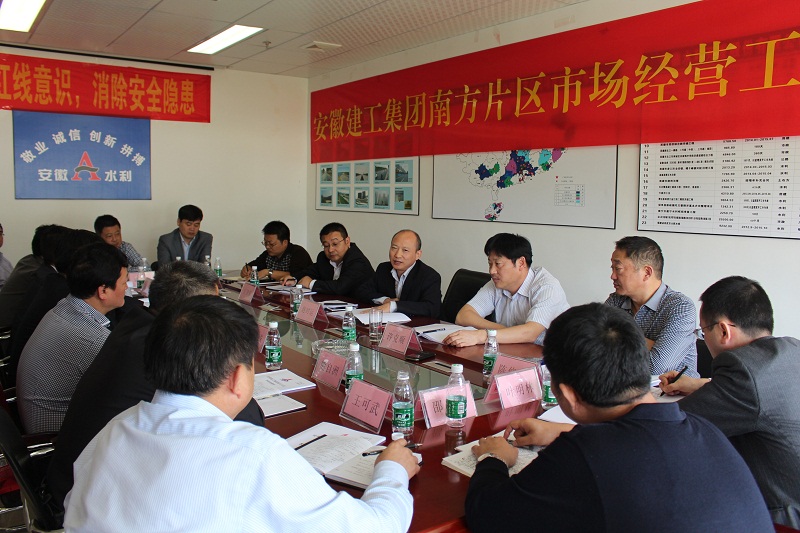 2015年11月2日上午,安徽建工集團在安徽水利股份南方公司(廣州)會(huì )議室召開(kāi)了南方片區市場(chǎng)經(jīng)營(yíng)會(huì )議。集團公司董事長(cháng)、黨委書(shū)記趙時(shí)運出席會(huì )議并講話(huà),集團公司副總經(jīng)理、黨委委員許克順、總經(jīng)理助理汪衛東、經(jīng)營(yíng)部主任陳修翔、辦公室副主任余志剛,以及安徽水利、安徽三建、路橋集團、安徽路橋、安徽路港、安徽安裝、安徽交航、安建建設、安建海外等單位南方片區負責同志或分管領(lǐng)導參加了會(huì )議。