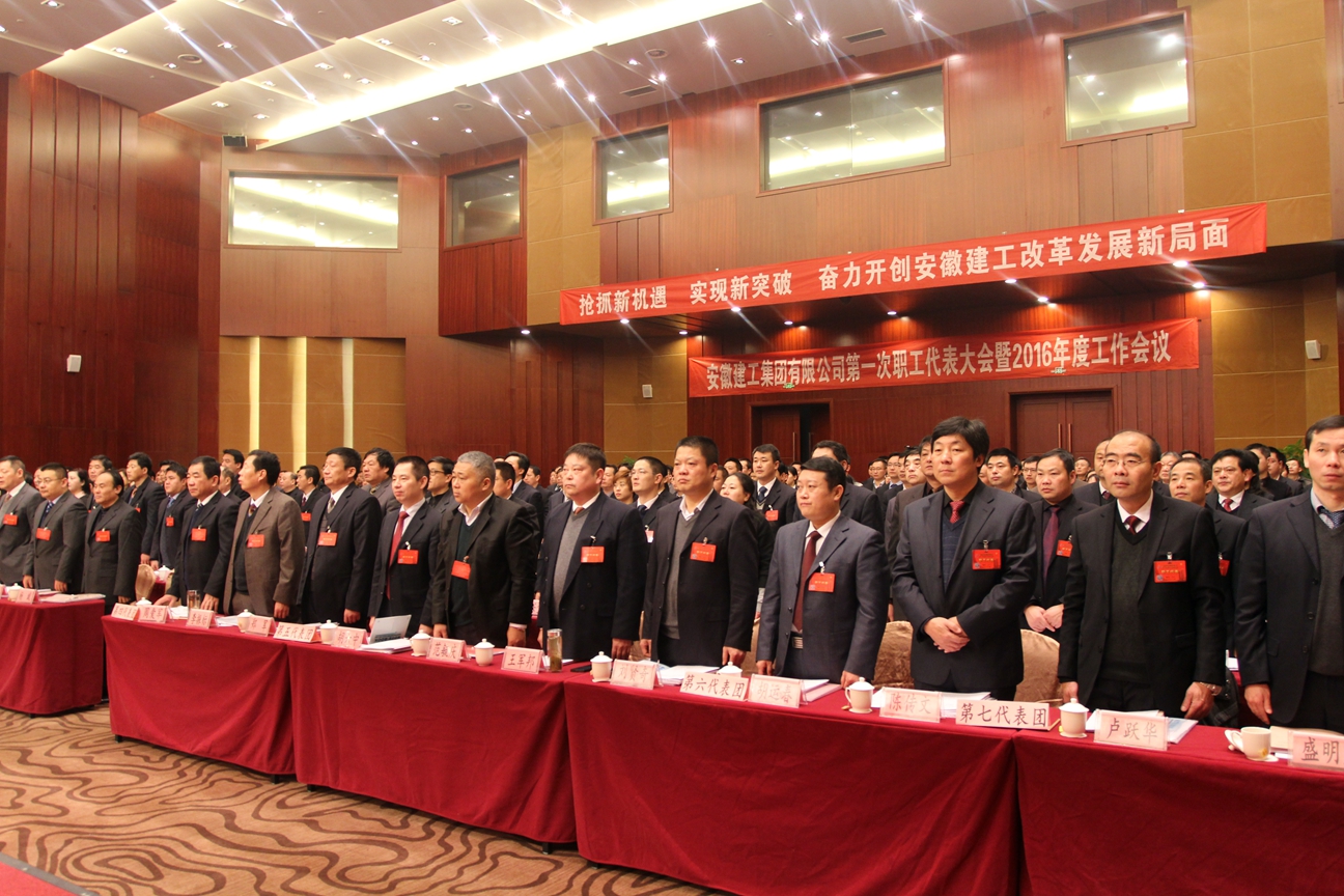 新春伊始,萬(wàn)象更新。1月26—28日,安徽建工集團一屆一次職工代表大會(huì )暨2016年工作會(huì )議在合肥勝利召開(kāi)。集團公司281名職工代表及部分特邀代表、列席代表齊聚一堂、共商大計。大會(huì )聽(tīng)取并審議通過(guò)了集團公司《總經(jīng)理工作報告》、《財務(wù)工作報告》、《工會(huì )工作報告》,聽(tīng)取了《改制改革整體上市進(jìn)展情況的通報》,集團公司黨委書(shū)記、董事長(cháng)趙時(shí)運作會(huì )議講話(huà)。會(huì )議全面回顧總結2015年及“十二五”時(shí)期工作,科學(xué)分析當前面臨的形勢,對2016年及“十三五”發(fā)展進(jìn)行總體部署,號召集團全體職工團結一致、堅定信心、銳意進(jìn)取、真抓實(shí)干,奮力開(kāi)創(chuàng )安徽建工改革發(fā)展新局面。會(huì )議表彰了2015年度集團公司先進(jìn)單位、先進(jìn)集體、先進(jìn)個(gè)人;簽訂了2016年度經(jīng)營(yíng)業(yè)績(jì)責任書(shū)和黨委工作目標責任書(shū)。省國資委副主任、黨委委員項小龍,省住建廳副廳長(cháng)曹劍出席會(huì )議并講話(huà)。集團公司黨委副書(shū)記牛曙東主持大會(huì )并致開(kāi)幕詞;集團公司董事、副總經(jīng)理、黨委委員楊廣亮致閉幕詞。